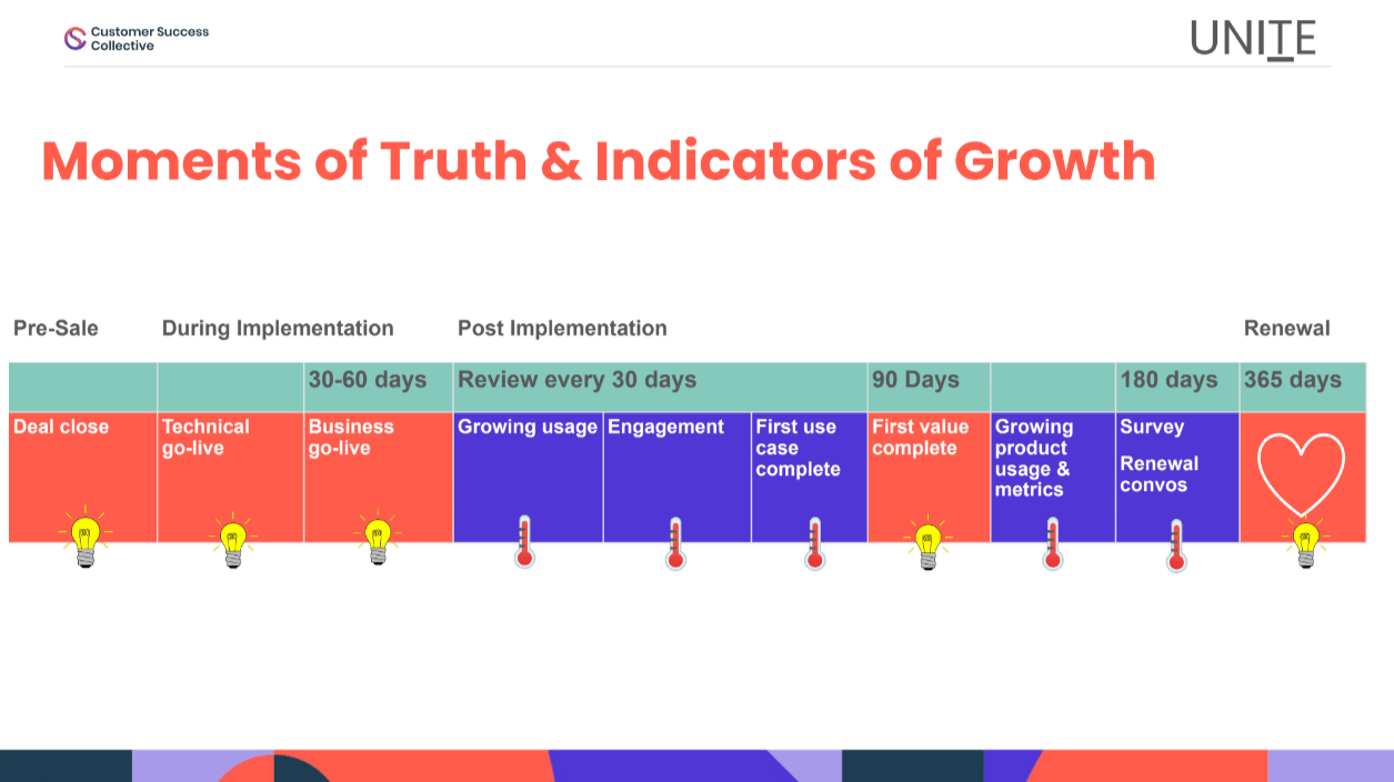 To make these transitions meaningful and measurable, I advocate for identifying moments of truth and indicators of growth. By setting specific goals and milestones, such as achieving "first value," we can quantify the customer's journey in terms of tangible achievements and satisfaction.