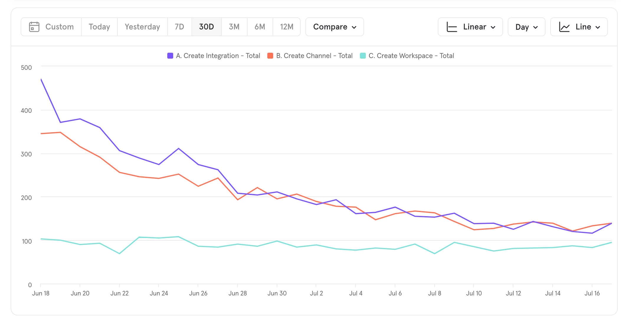 Catalyst also offers the ability to report, and monitor the customer’s health, identify at-risk hazards, and a non-technical view of your product’s usage and engagement.