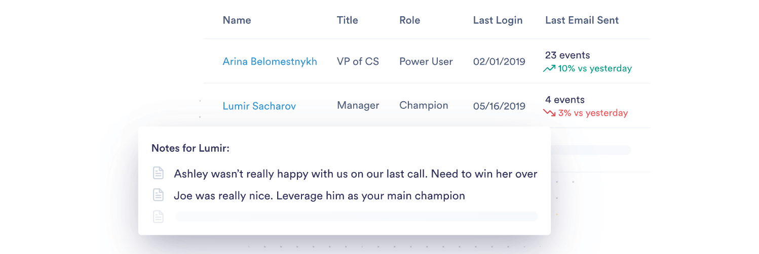 Catalyst’s customer success platform offers its users a 360˚ view of its customers, their usage, and engagement in one central place. It consolidates your customer data ready for your team to segment it to whatever criteria you see fit. Catalyst’s biggest selling point is its seamless UI, allowing you to filter any data point from your integrations including title, role, location, last login, product usage metrics, and more.
