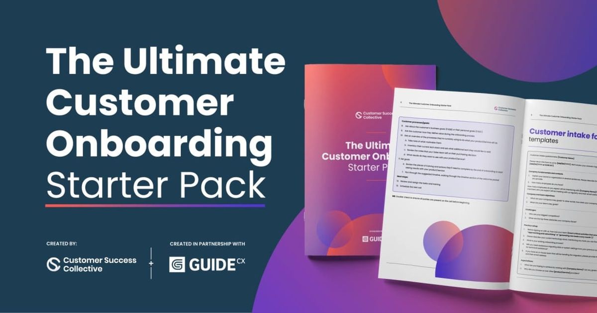 What is customer onboarding? [Video] Learn moreEnjoyed this video? Why not check out some related reading 👇The complete guide to customer onboardingWhether you’re starting a new job or setting up a new program on your computer, onboarding plays a part in most people’s day-to-day lives. The first definition of onboarding given by Merriam-Webster follows the recruitment angle: “The act or process of orienting and training a new employee.”Customer Success CollectiveCustomer Success CollectiveThe Ultimate Customer Onboarding Starter PackIt’s time to streamline your customer onboarding process. You can wave goodbye to writing unnecessary emails or agendas. Think of this as your onboarding one-stop shop.Customer Success CollectiveGrace GuptaBest practices for customer onboardingCustomer onboarding is one of the most critical aspects of any business. It sets the tone for the entire customer experience and can literally be the difference between a customer deciding to stick with your company, or finding an alternative with your competitors.Customer Success CollectiveGrace Gupta